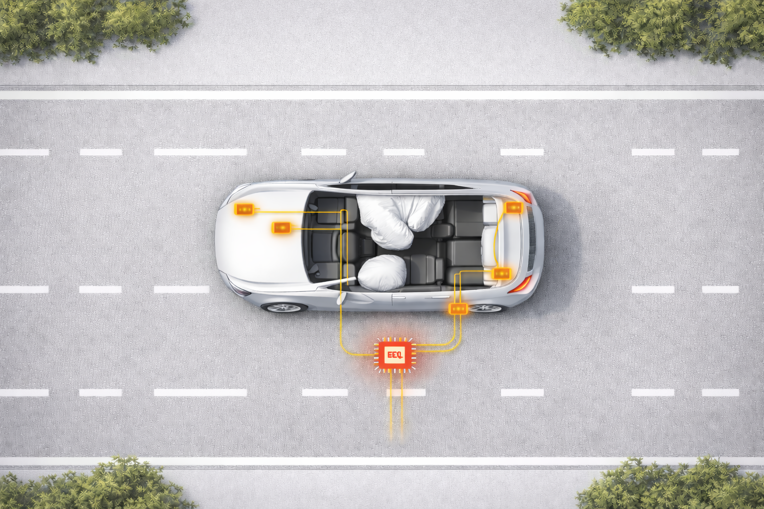 Passive safety sensors play a critical role in determining when restraint systems such as seat belt pretensioners and airbags should deploy during a crash. In frontal collisions, accelerometers measure rapid changes in vehicle deceleration and send this data to an electronic control unit (ECU), where software evaluates whether the severity of the event meets deployment thresholds. This decision-making process occurs extremely quickly—often within milliseconds—making it one of the most time-critical functions in vehicle safety systems.